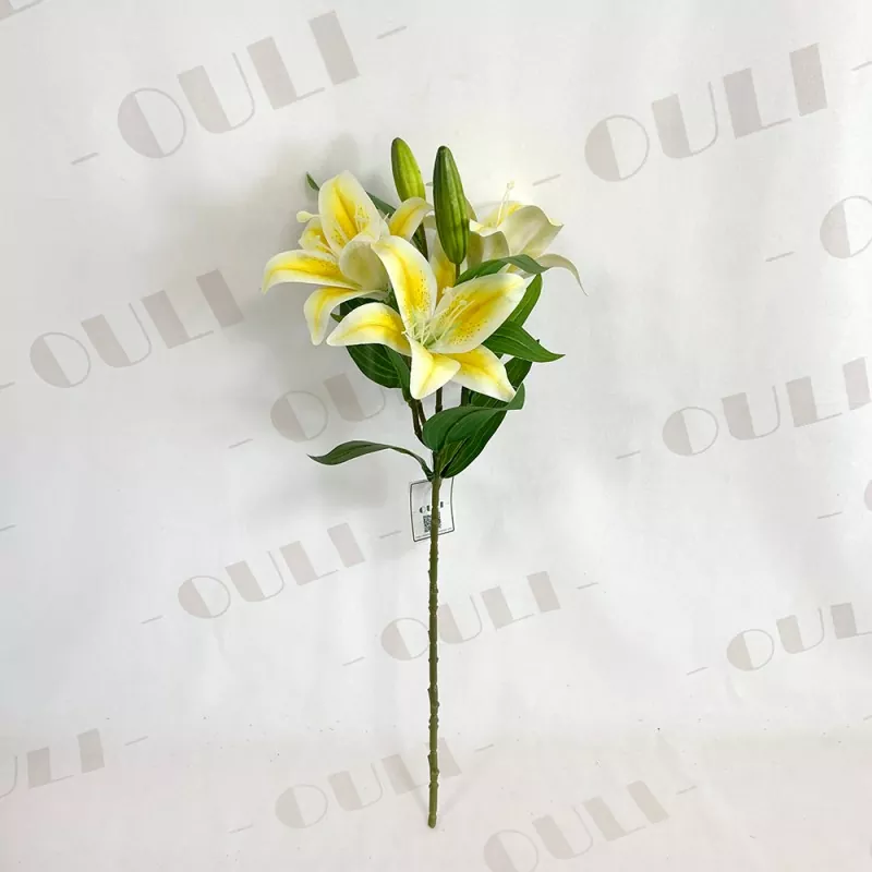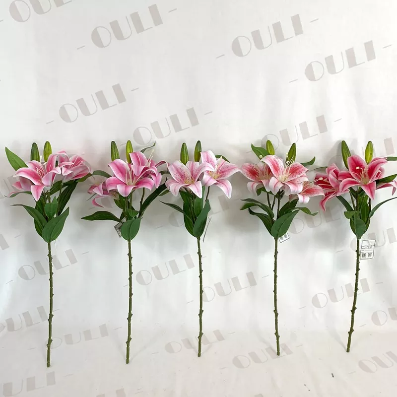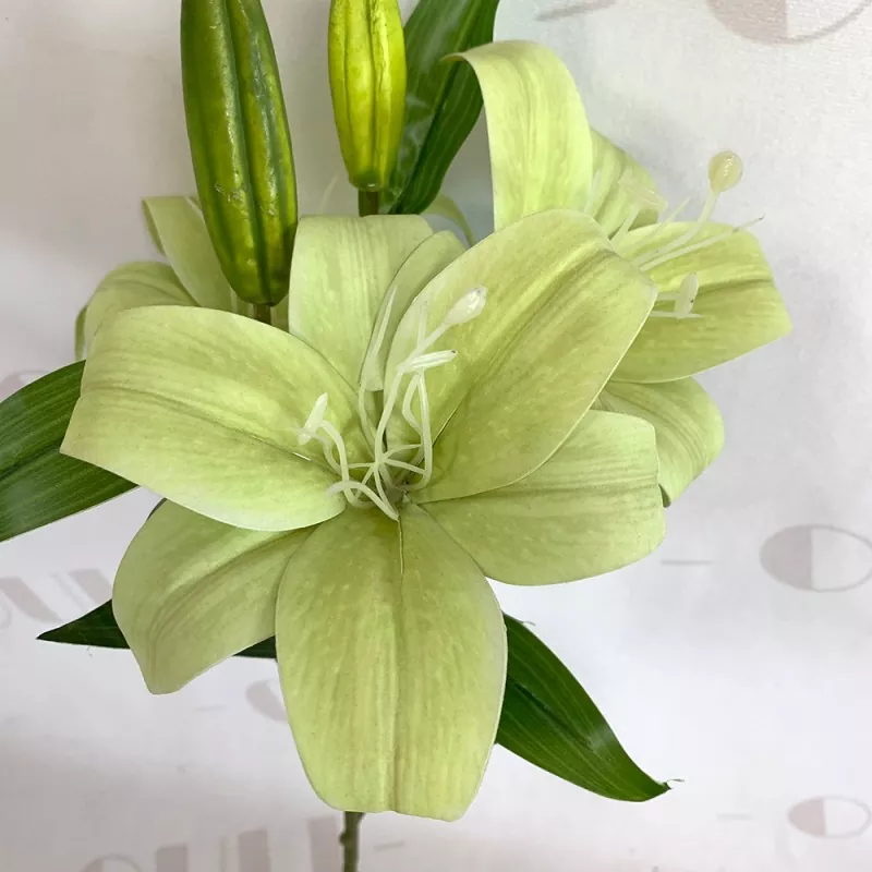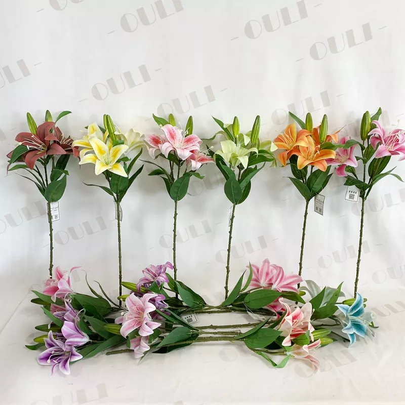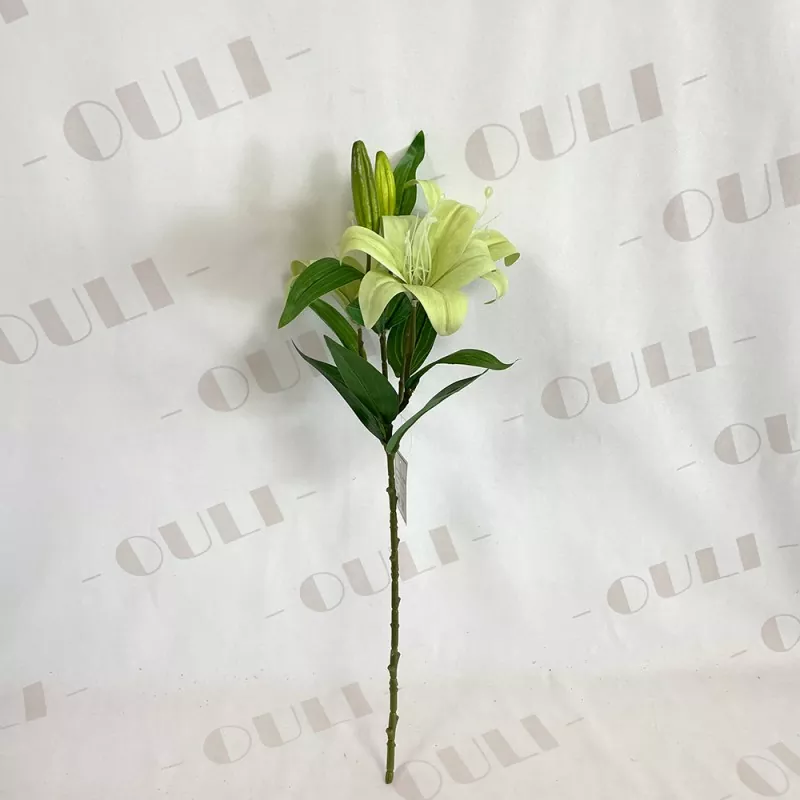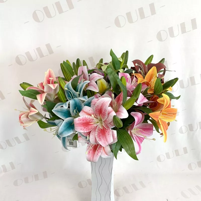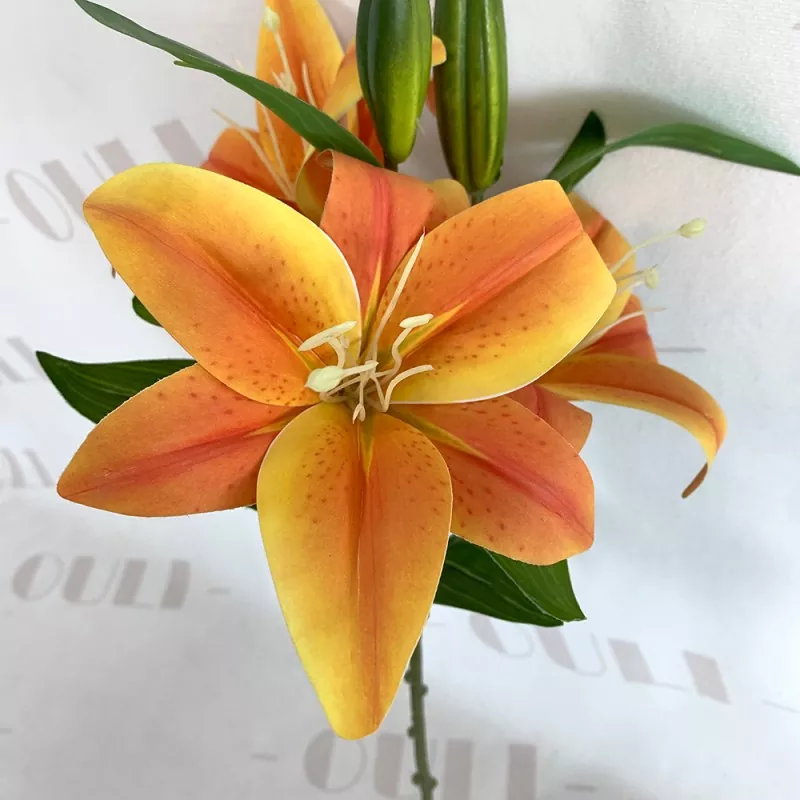 OULI® -keinotekoiset liljakukkamme, 57 cm korkeat, ovat erinomaisesti suunniteltuja ja luonnollisia. Ne sisältävät 3 kukkivaa liljaa ja 2 silmua, joiden kukan halkaisija on noin 15 cm. Ne ovat erityisen sopivia kodinsisustus-, hääjärjestelyihin ja festivaalimaisemiin. Väärennettyjä liljojamme on saatavana 20 värinä, joista kukin on gradienttiväri, ja pisteet ovat samanlaisia kuin tiikerililjat, mikä on erittäin kaunis.