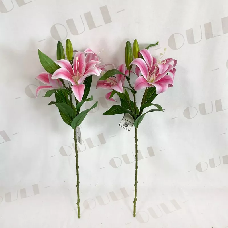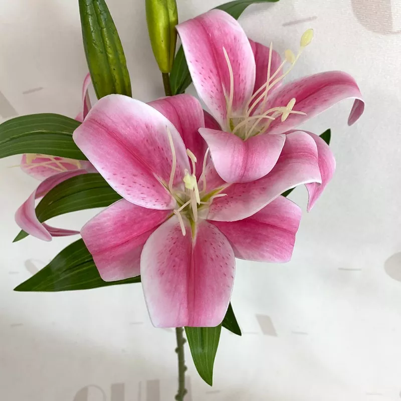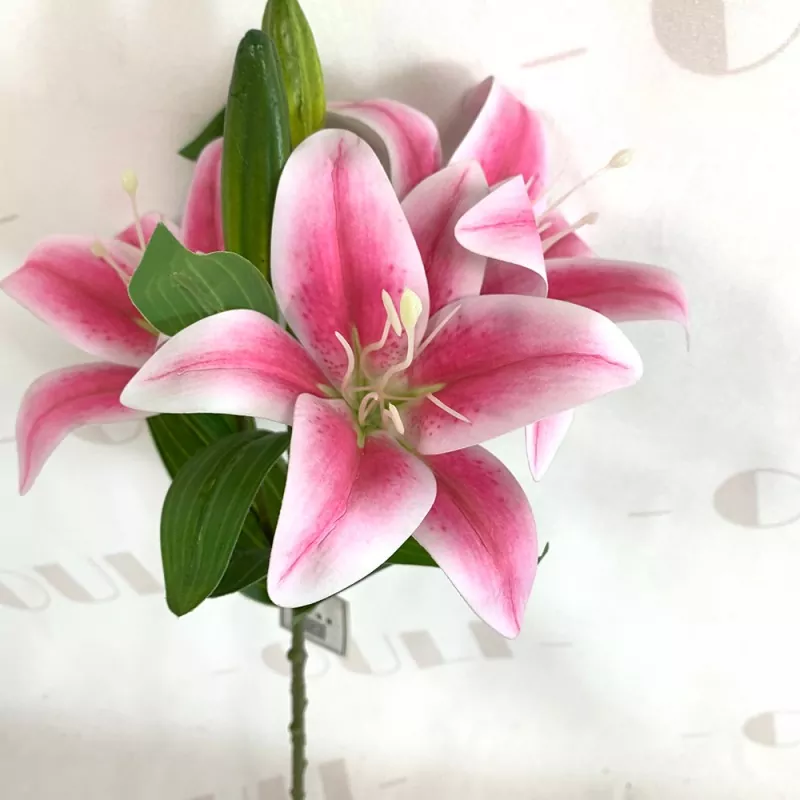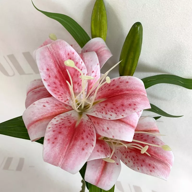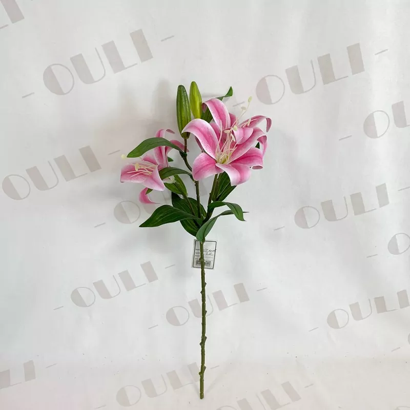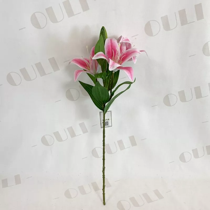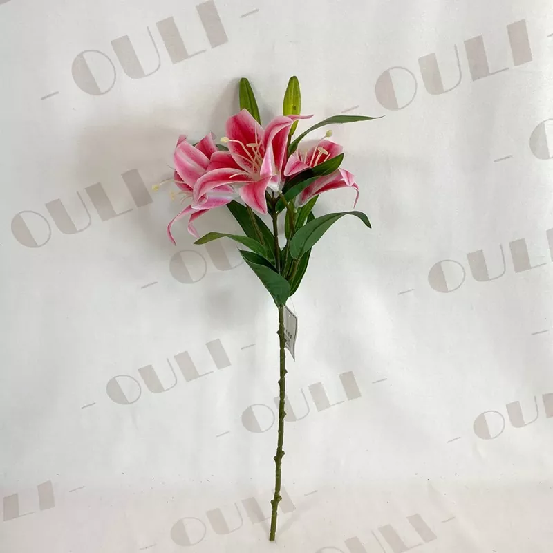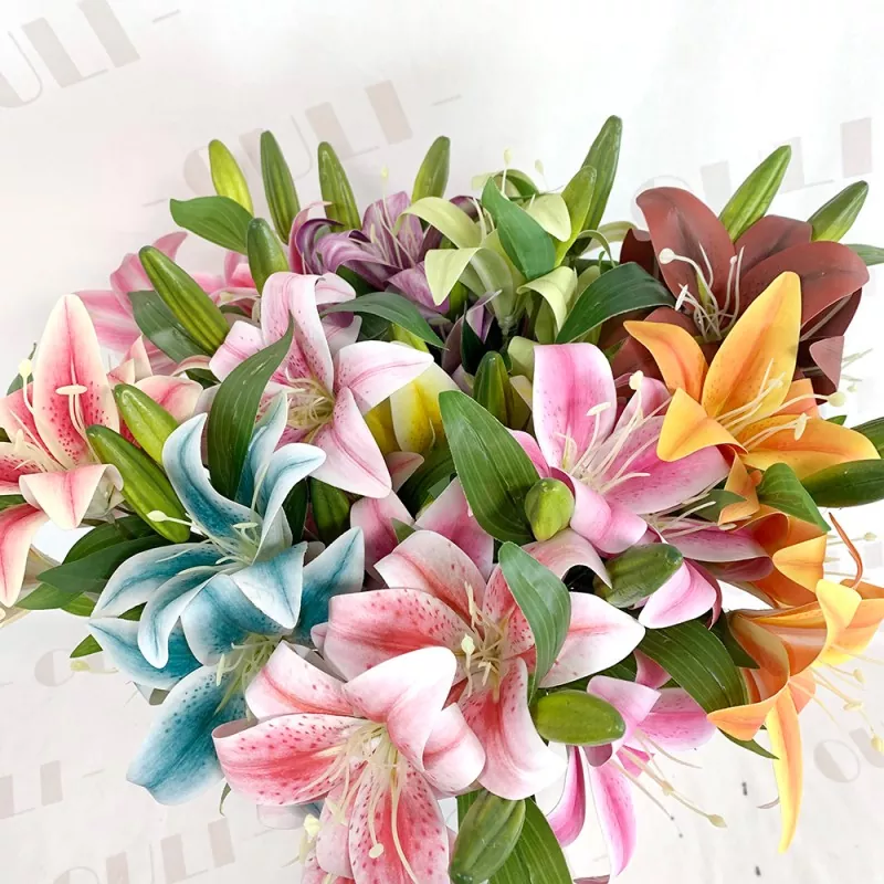 OULI® -keinotekoiset liljakukkamme, 57 cm korkeat, ovat erinomaisesti suunniteltuja ja luonnollisia. Ne sisältävät 3 kukkivaa liljaa ja 2 silmua, joiden kukan halkaisija on noin 15 cm. Ne ovat erityisen sopivia kodinsisustus-, hääjärjestelyihin ja festivaalimaisemiin. Väärennettyjä liljojamme on saatavana 20 värinä, joista kukin on gradienttiväri, ja pisteet ovat samanlaisia kuin tiikerililjat, mikä on erittäin kaunis.