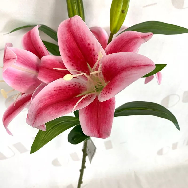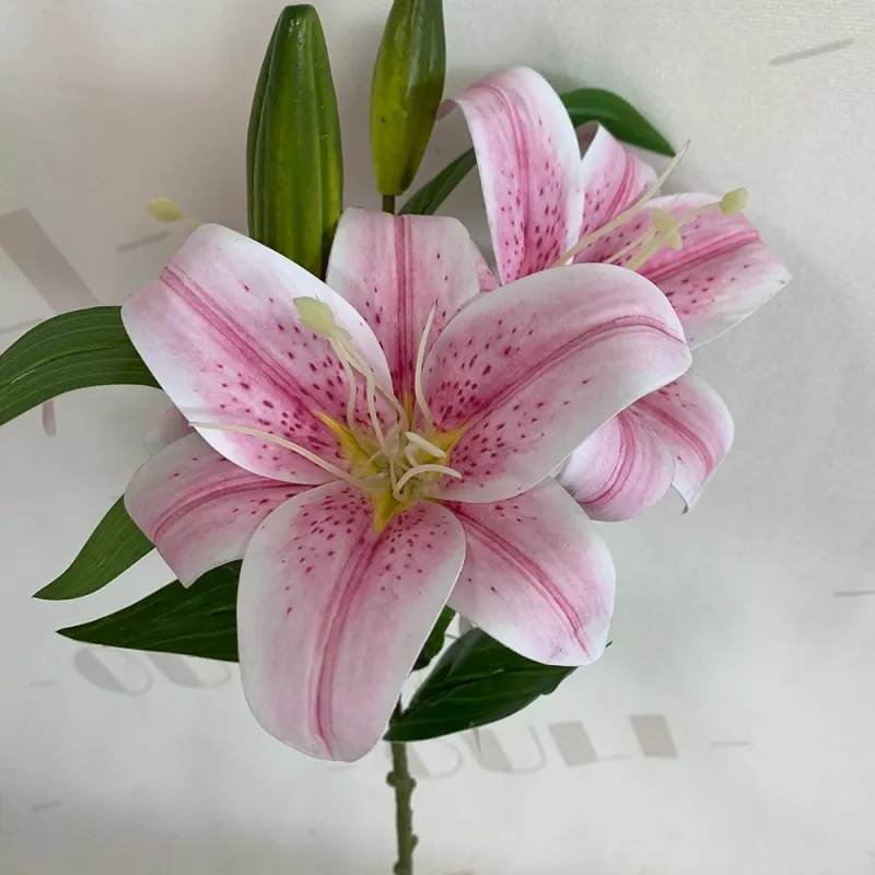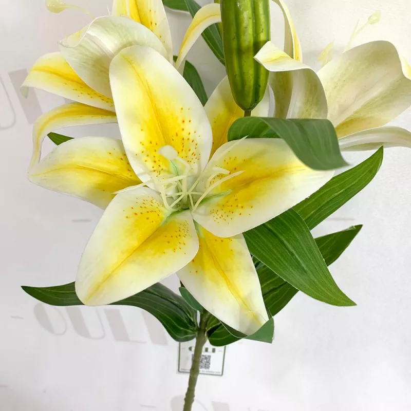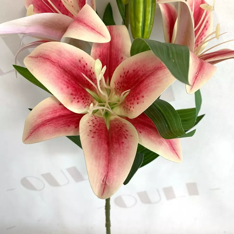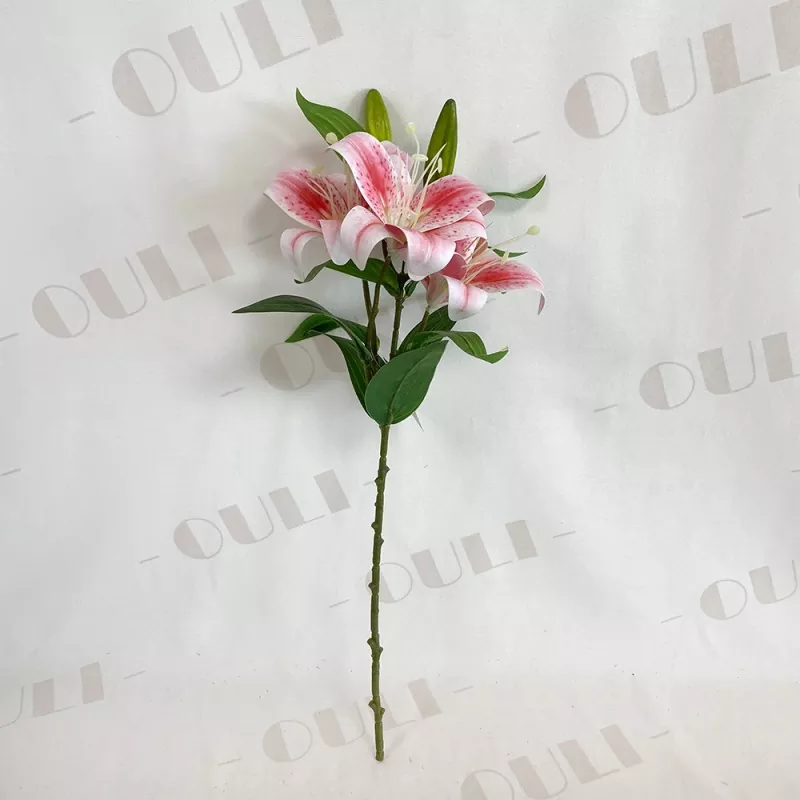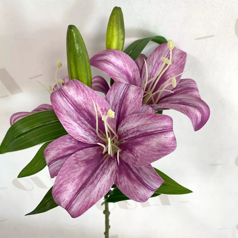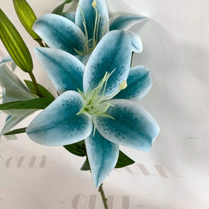OULI® -keinotekoiset liljakukkamme, 57 cm korkeat, ovat erinomaisesti suunniteltuja ja luonnollisia. Ne sisältävät 3 kukkivaa liljaa ja 2 silmua, joiden kukan halkaisija on noin 15 cm. Ne ovat erityisen sopivia kodinsisustus-, hääjärjestelyihin ja festivaalimaisemiin. Väärennettyjä liljojamme on saatavana 20 värinä, joista kukin on gradienttiväri, ja pisteet ovat samanlaisia kuin tiikerililjat, mikä on erittäin kaunis.