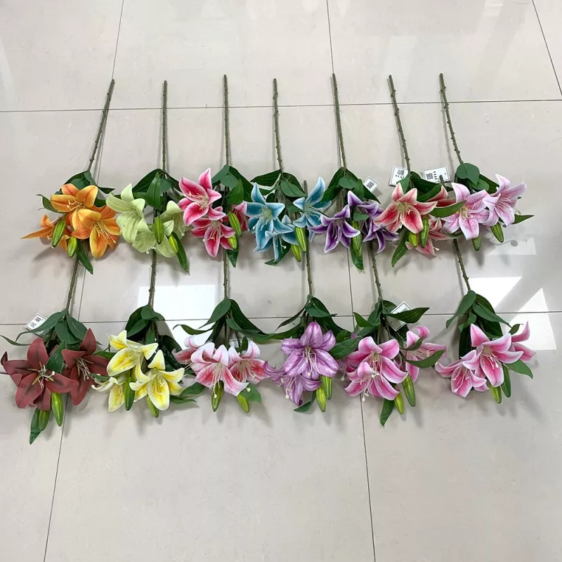 57cm 3 Heads keinotekoisia liljakukkia kukka koti- ja hääkoristeelle