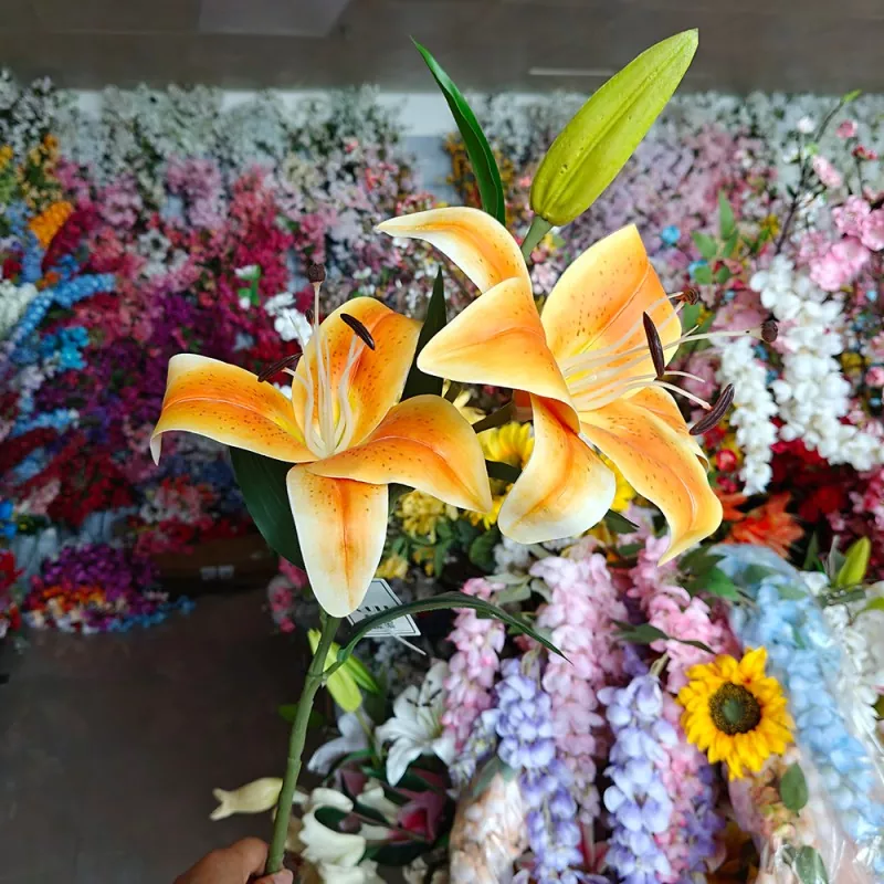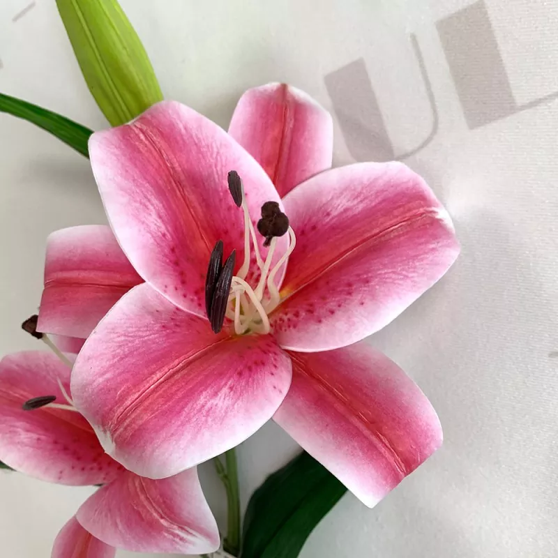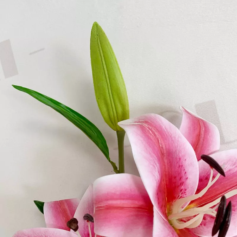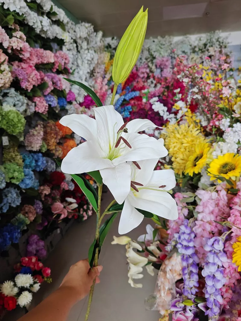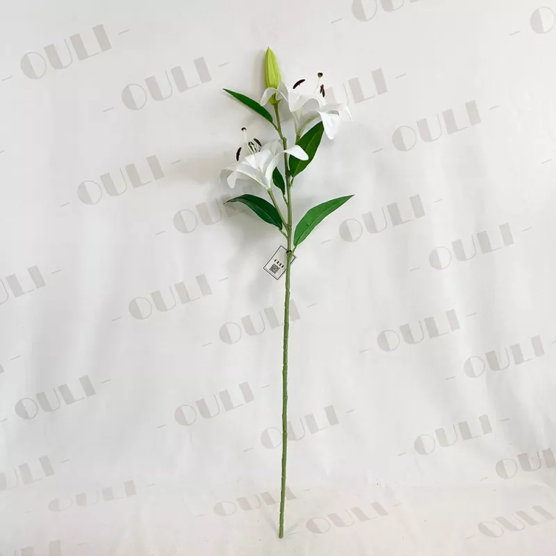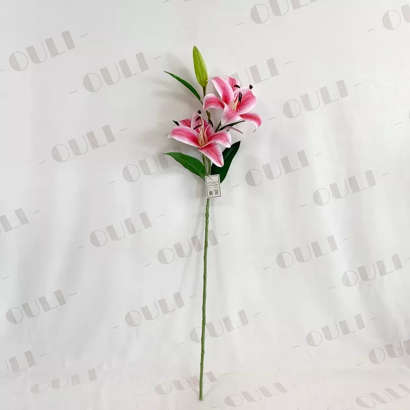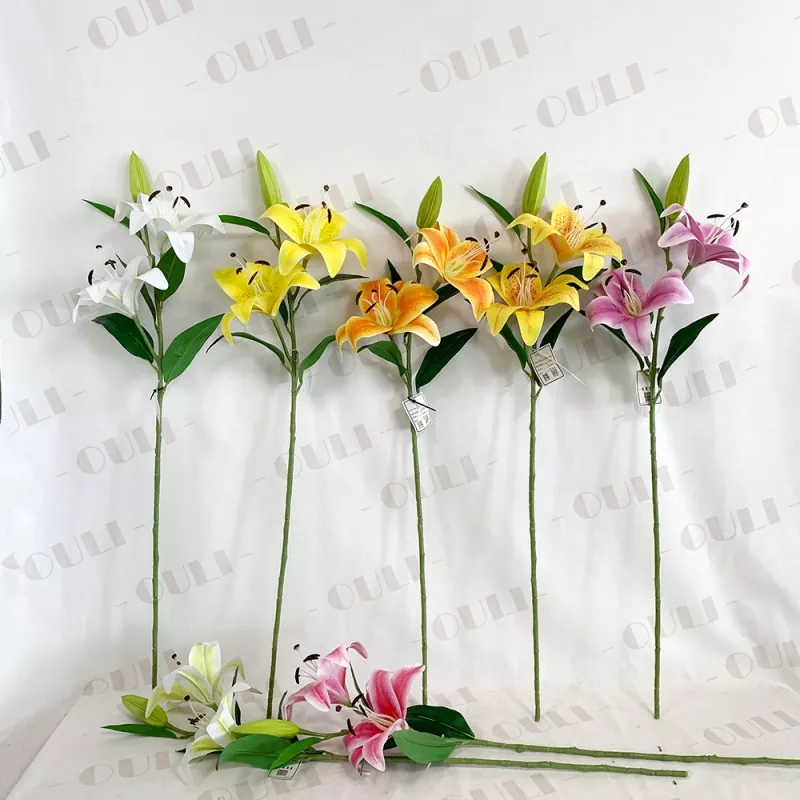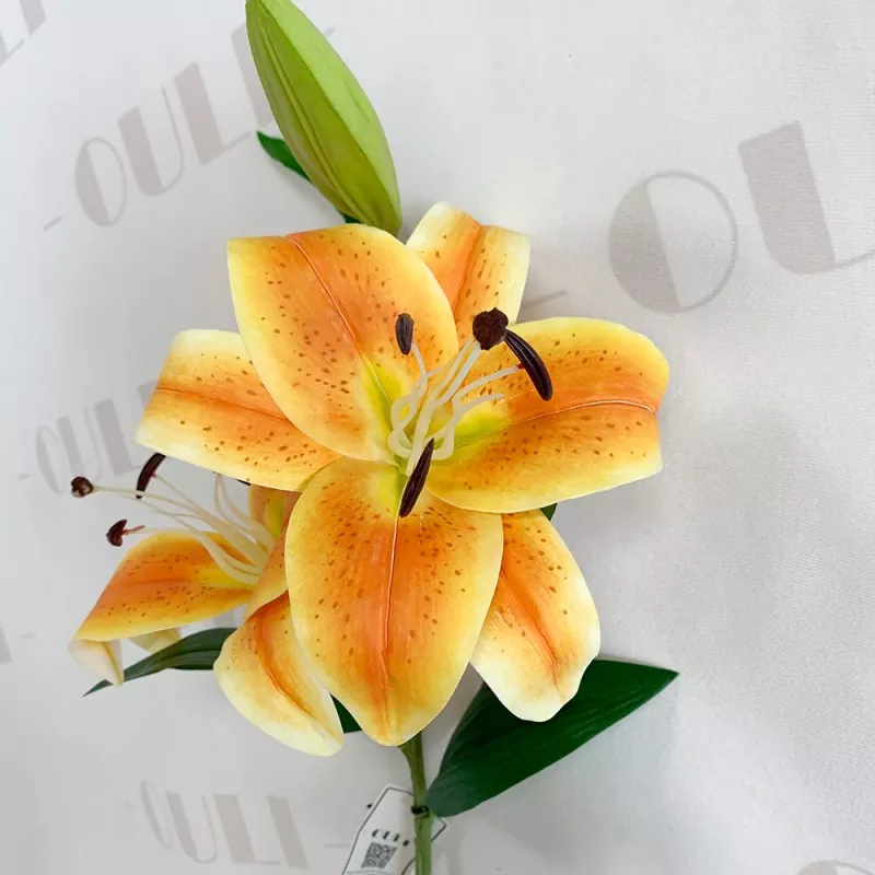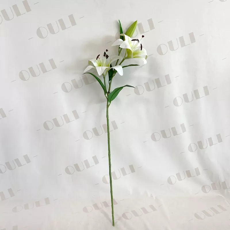 Brändinä, joka keskittyy keinotekoisten kukkien vientiin, OULI® on sitoutunut tarjoamaan maailmanlaajuisia asiakkaille koristeellisia kukkataiteita, joissa yhdistyvät kauneus ja laatu. Tämä PU Fake Lily käyttää yhdistelmää pehmeää PU: ta ja korkeaa simulaatiota silkkikankaalla, suorilla oksilla ja täydellisillä ja luonnollisilla kukilla. Yhden haaran pituus on 90 cm, joka sisältää 2 täysin kukinnan kukkia ja 1 silmu, mikä on ihanteellinen esine nykyaikaiseen kodinsisustus- ja häätaustaan. Tämä PU Fake Lily on läpäissyt kansainväliset sertifikaatit, kuten CE/UKCA/ROHS, ja se sopii pitkäaikaiseen sisäkoristeeseen.