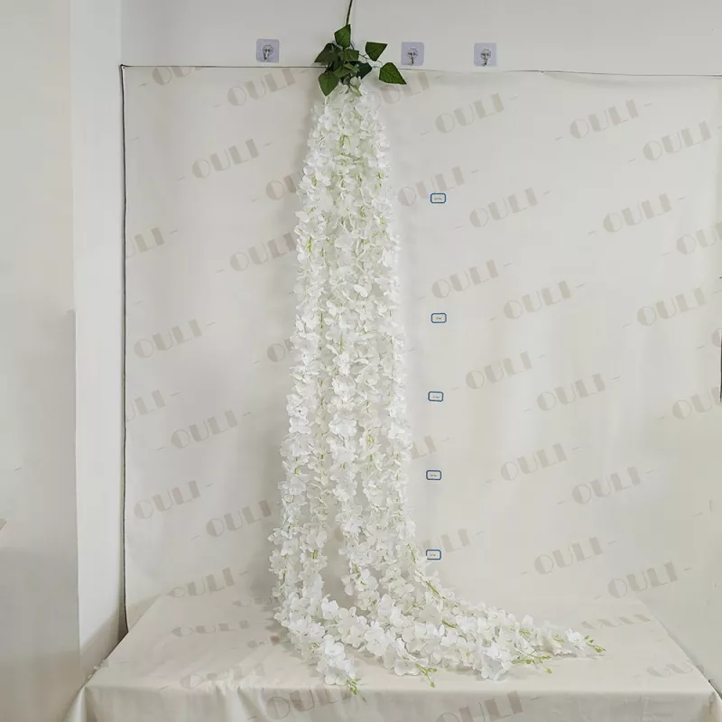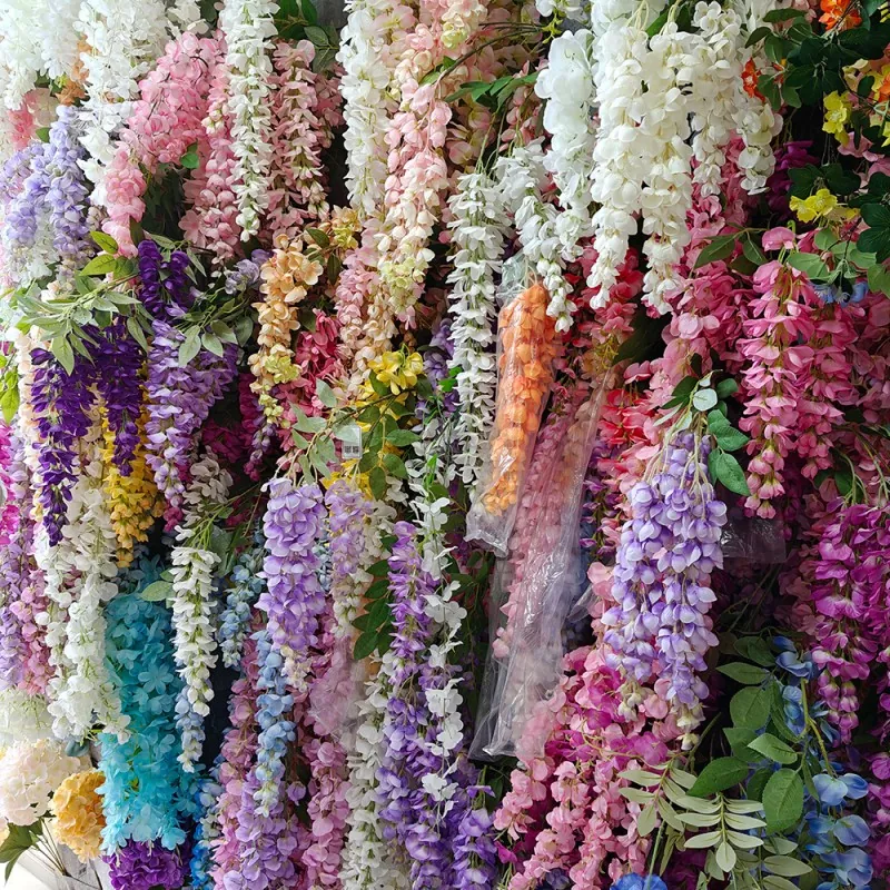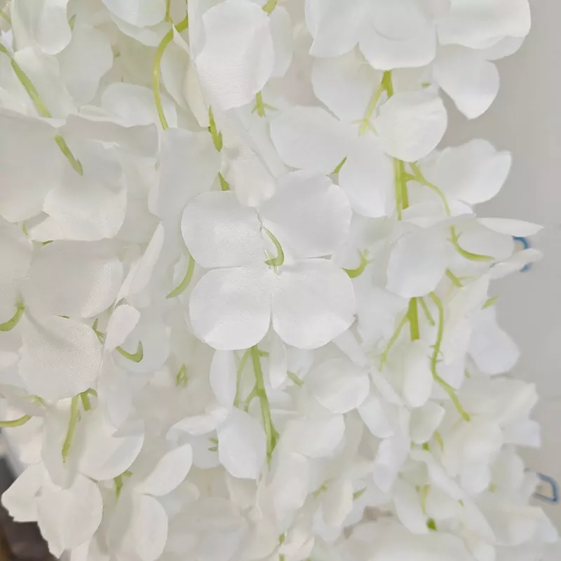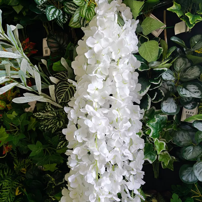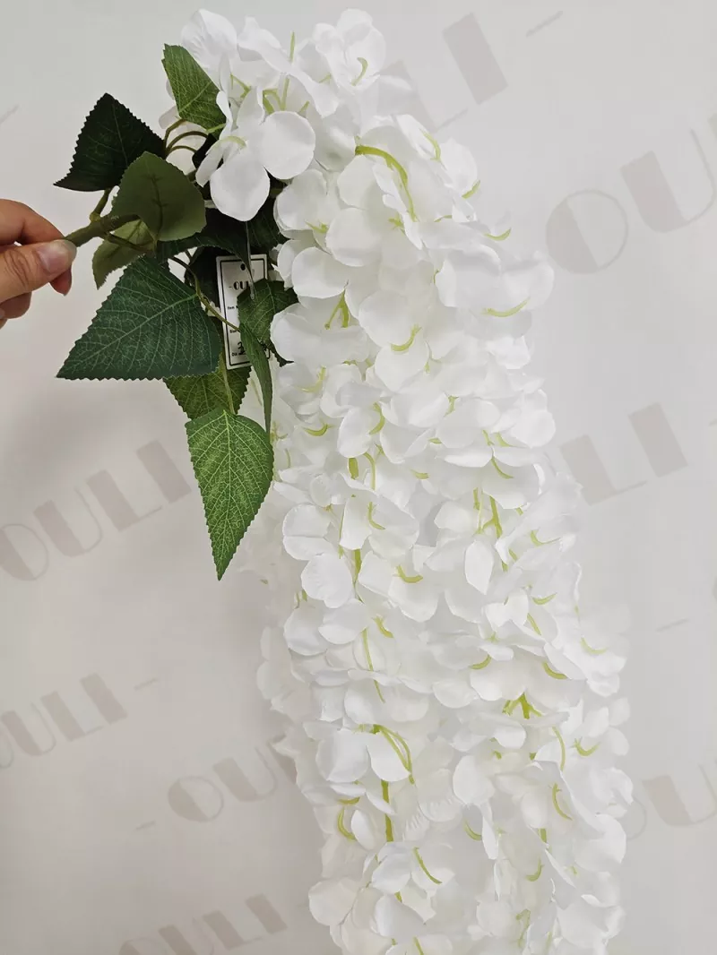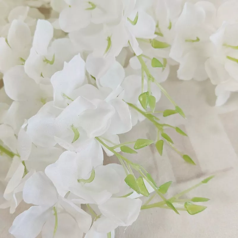 Jokaisella roikkuvalla Wisteria -keinotekoisella kukilla on viisi Wisteria -viiniköynnöksiä, mikä lisää merkittävästi koristelun tiheyttä.